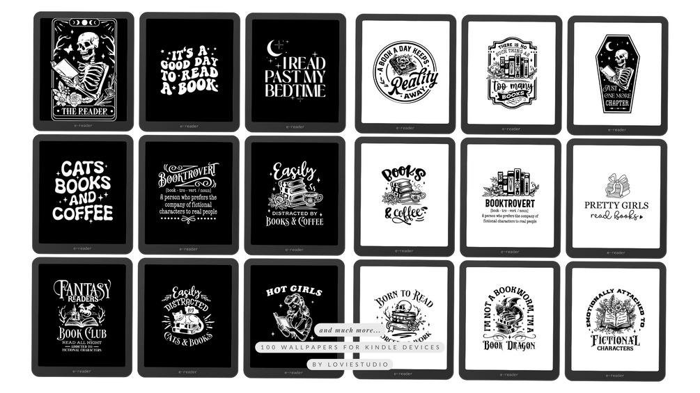 Apresentando a primeira coleção de descanso de tela para Kindle, sendo 100 papéis de parede no total, todos contendo frases relacionadas à leitura de livros, para deixar seu dispositivo Kindle com a sua cara!